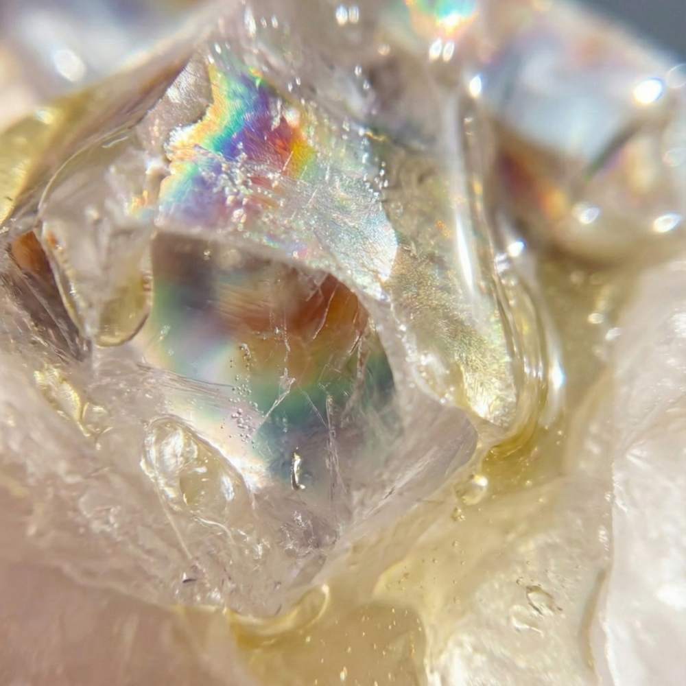 Select your frequency from our 4 active formulas. Drip the concentrated Future Energy Serum directly onto the raw quartz matrix. The stones hold the scent profile, releasing your chosen mood for 48+ hours, while the glass refracts sunlight to create a visible aura in your room.